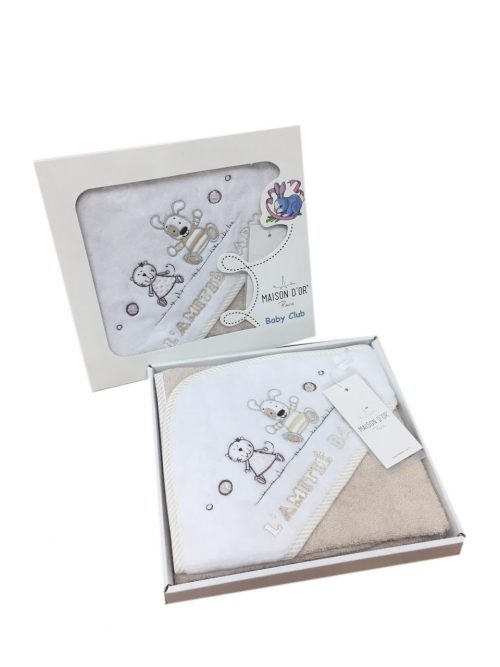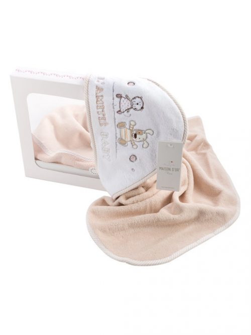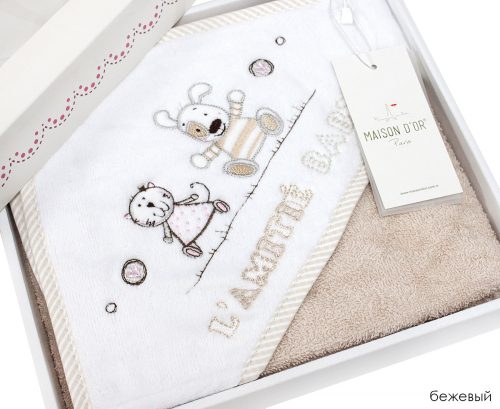 Серия полотенец-конверт от турецкого бренда MAISON D’OR выполненны в комбинации мягкой гипоаллергенной хлопковой махры и отделкой из батиста в тонкую полосочку. Веселая аппликация и изящная вышивка дополняют дизайн. Такие полотенца будут бережно заботится о коже Вашего малыша и дарить прекрасное настроение изо дня в день.