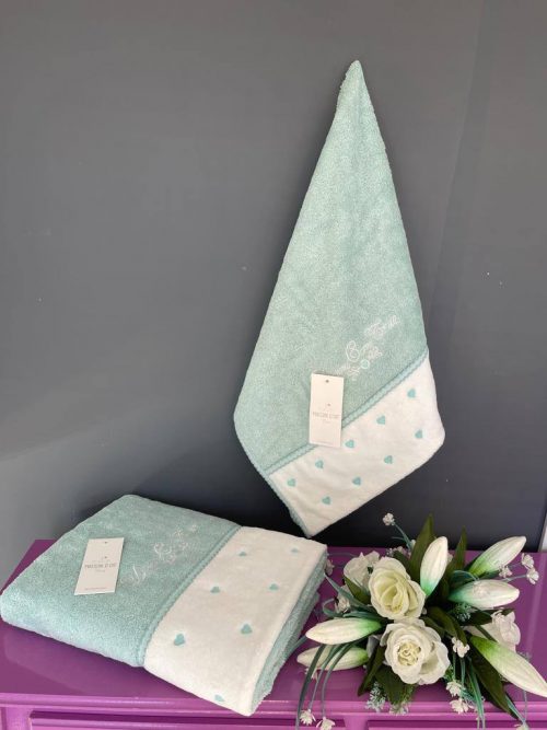 Махровое полотенце с оригинальным рисунком в виде сердечек и вышивкой . Это полотенце очень мягкое, пушистое и приятное к телу. 100% микро-хлопок высшей категории. Великолепно впитывает влагу, легко стирается.