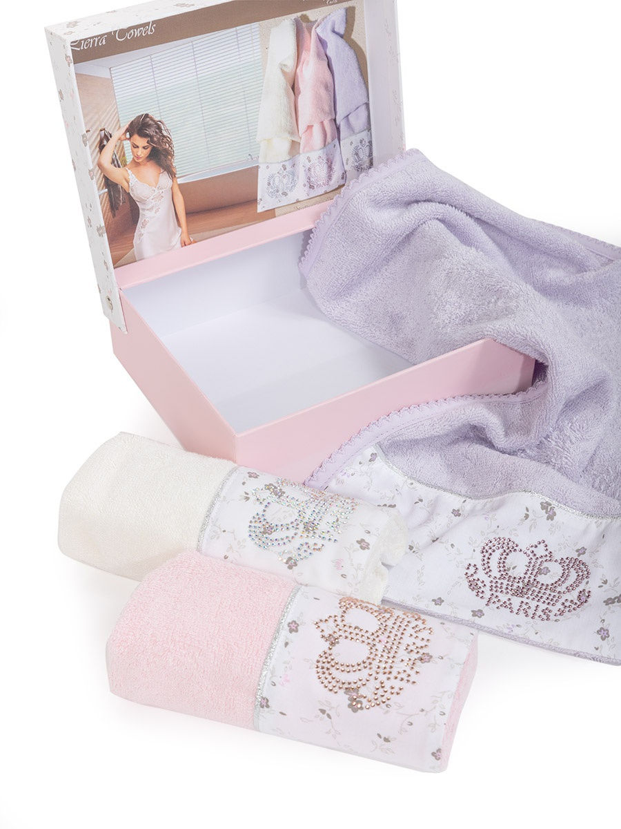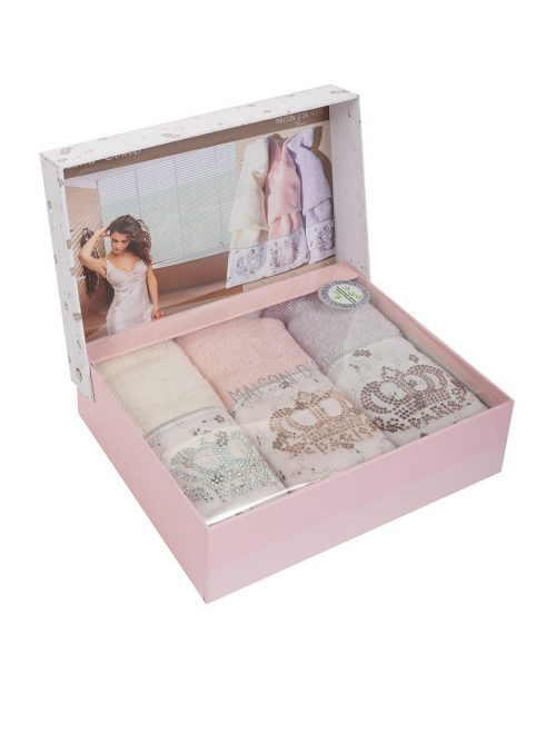Полотенца сложены в подарочную упаковку с логотипом бренда.