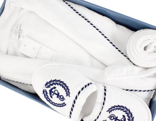 Мужской комплект Michel Sailing состоящий из халата и тапок дополнит ваш домашний отдых, сделав его еще более уютным и комфортным. Внешняя, оборотная сторона ткани — фактурная махра.