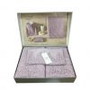 В набор входит 3-и полотенца: 30х50 см. — полотенце для рук, 50х100 см. — лицевое полотенце, 90х150 см. — большое банное, его размер в отличии от стандартных вариантов(70х140 см.) — позволяет полностью обернуться в него.