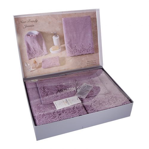 Полотенца сложены в подарочную упаковку с логотипом бренда.