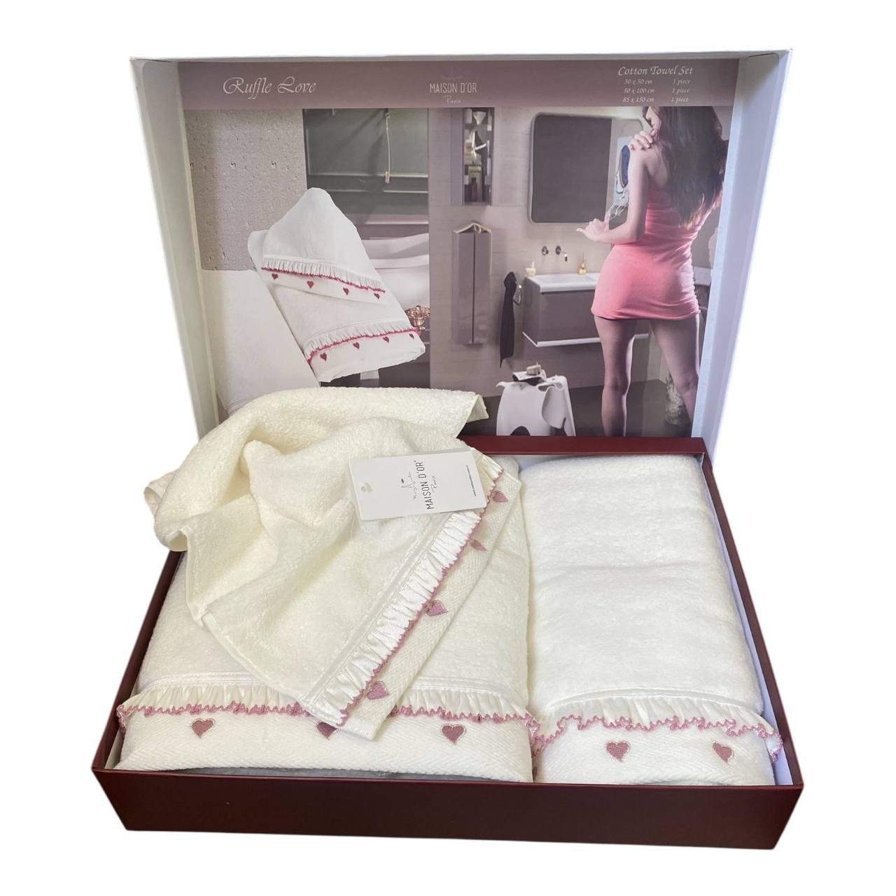 MAISON D’OR RUFFLE LOVE набор полотенец — 3 шт крем/фиолетовый