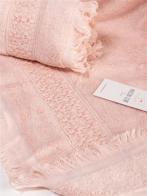 Невероятно нежный комплект махровых полотенец в романтическом, воздушном дизайне обязательно порадует всех мечтательных натур и придаст особый шарм ванной комнате. Полотенца выполнены в нежных пастельных тонах и декорированы вставками из воздушной крупной вышивки — изюминки данной коллекции. По нижнему краю идет тонкая пушистая бахрома в тон. Полотенца выполнены из натурального 100% хлопка — идеально подходящего любой коже, даже самой чувствительной, поэтому данный комплект станет отличным подарком любому!