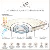 Comfort Premium L — мягкая подушка с уровнем поддержки выше среднего, что приблизительно 8-9* см. под нагрузкой и 20 см.* без нагрузки. Вес: 1000 гр.