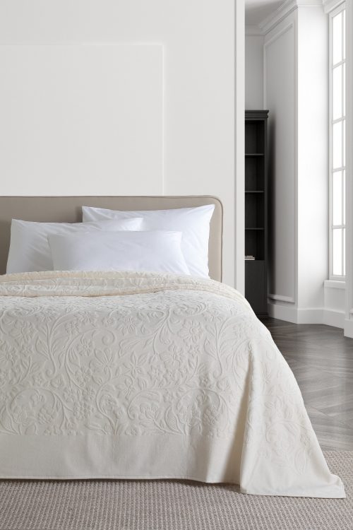 Покрывало от турецкого бренда Pavia Home для спальни изготовлено из 100% высококачественного хлопка (жаккард). Благодаря особому переплетению нитей ткани, оно прочное, почти не мнется и не растягивается, хорошо сохраняет цвет.