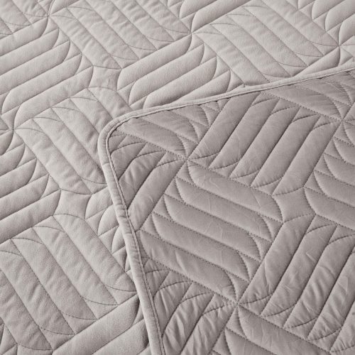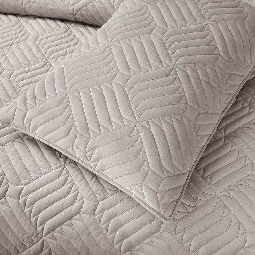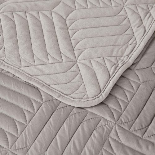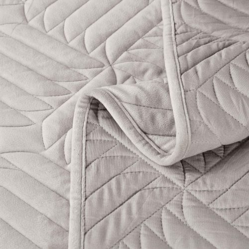 Покрывала выполнены в 10 оттенках: крем, мокко, пепельный, песочный, светло-бежевый, светло-серый, серый, темно-серый, чайная роза и черный. Стежка в виде геометрического орнамента подойдет к любому современному интерьеру. Из-за особого плетения, велюровая ткань покрывала отражает свет и красиво переливается при различном освещении.