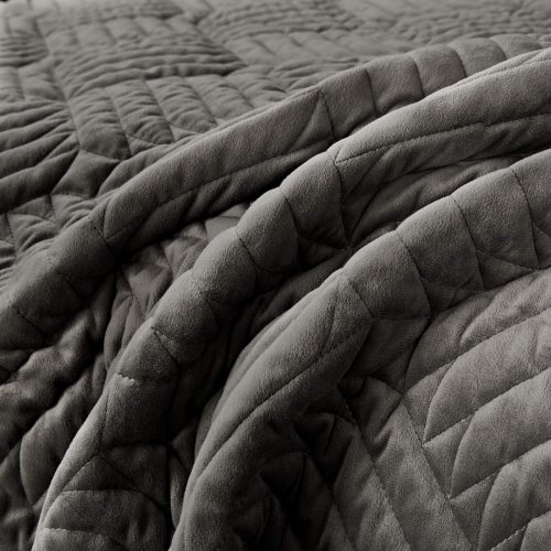 Покрывала выполнены в 10 оттенках: крем, мокко, пепельный, песочный, светло-бежевый, светло-серый, серый, темно-серый, чайная роза и черный. Стежка в виде геометрического орнамента подойдет к любому современному интерьеру. Из-за особого плетения, велюровая ткань покрывала отражает свет и красиво переливается при различном освещении.