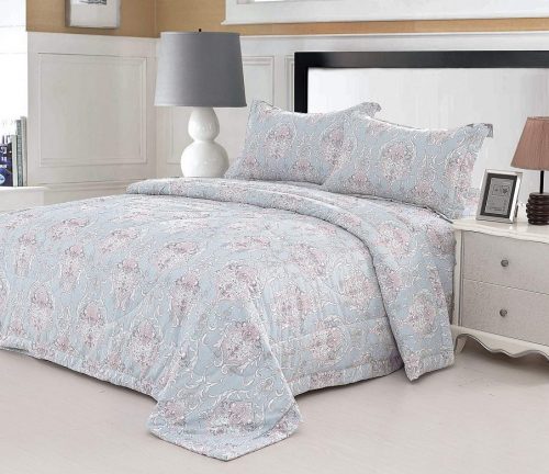 Летний набор от Sofi de Marko идеально подойдет для межсезонья. Состоит из легкого летнего одеяла, наволочек и простыни.  Состав хлопка с поливискозой  лучше всего подходит для жарких летних ночей. Такой летний набор не требует покрывала, одеяло может выполнять также и декоративную функцию благодаря красивому рисунку, где сочетается превосходно цветочный орнамент с вензелями или восточными мотивами.
