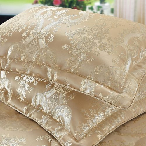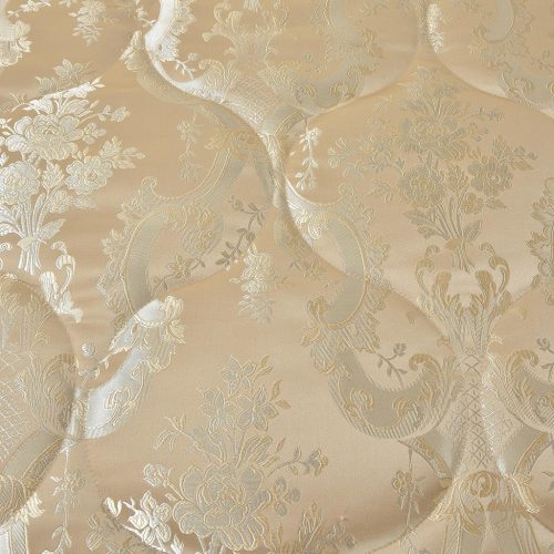 Стеганое, жаккардовое покрывало на подкладке из плотной декоративной ткани. Отличительной особенностью данной модели является её оригинальный жаккардовый рисунок. Данное стеганое покрывало представляет собой многослойное изделие, внешняя часть изделия состоит из жаккардового полотна, а внутренний наполнитель состоит из силиконизированного волокна плотность которго составляет 100г/м2. Для того, чтобы внутренний слой не сбивался в комки и создать фактурность внешних слоев, по всей площади покрывала производится простежка (прошивание). Это могут быть ровные линии или фантазийные узоры.