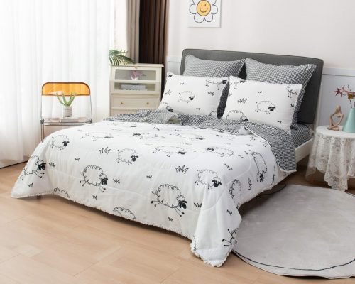 В комплекты комфортеров с одеялом Бернадетт входят наволочки, простыня и легкое всесезонное одеяло. Оцените это современное и очень удобное решение, которое идеально подходит тем, кто не любит возиться с пододеяльниками.