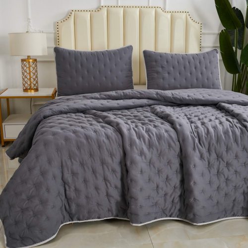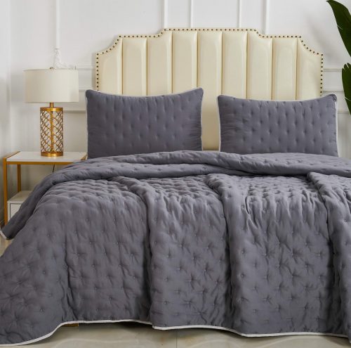 Двусторонние стеганные покрывала Броуди легкие и прочные. В комплект входит покрывало и две наволочки, при желании покрывало можно использовать как легкое одеяло.