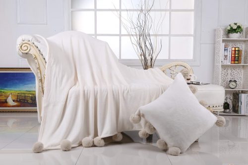 Плед Бубон от Sofi de Marko (Софи де Марко) из велсофта декорирован бубонами с двух сторон. Смотрится невероятно элегантно, плед двухсторонний, что немало важно. Велсофт похож по своей фактуре на велюр, отличается мягкостью и шелковистостью. Изделия из велсофта износоутойчивые и на нем не образуются катышки. Плед Бубон не только защитит вашу мебель, но и придаст уют и комфорт.