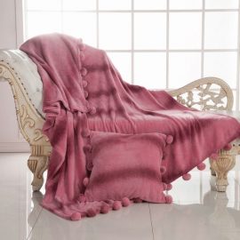 Плед Бубон от Sofi de Marko из велсофта декорирован бубонами. Смотрится невероятно элегантно, плед двухсторонний, что немало важно. Велсофт похож по своей фактуре на велюр, отличается мягкостью и шелковистостью. Изделия из велсофта износоутойчивые и на нем не образуются катышки. Плед Бубон не только защитит вашу мебель, но и придаст уют и комфорт. Также есть возможность дополнительно приобрести к нему наволочки.