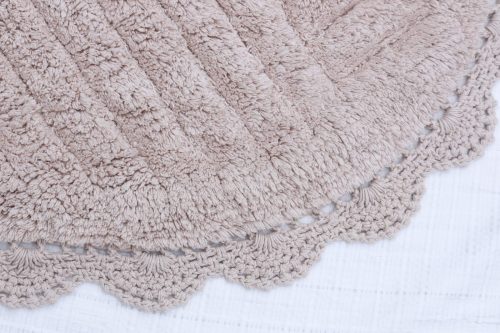 Кружевные коврики для ванной комнаты из высококачественного 100% хлопка не только мгновенно впитывают влагу, они мягкие и приятные на ощупь, а цветовая палитра воссоздает природные оттенки. Коврики из натуральных материалов прекрасно подойдут для современных, классических, а также для интерьеров в стиле «прованс».