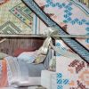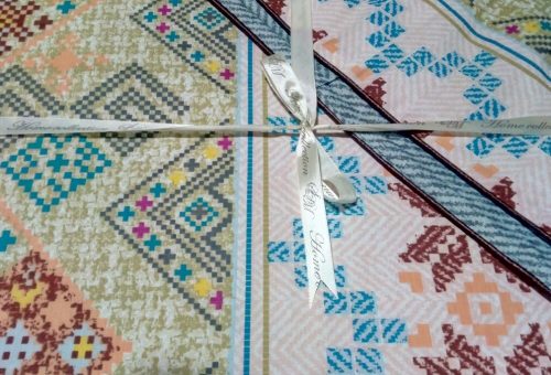 Расцветка пододеяльника почти как на картинке (немного узор не совпадает, на общий вид не влияет), качество отличное, атласный кант красиво смотрится, мне пришли две наволочки с одной стороны по цвету как простынь, а с другой стороны принт скорее похож на низ пододеяльника (два желтых зигзага вертикально, 2 оранжевых вертикально, коричневый орнамент на голубом фоне), у пододеяльника замочек расположен по короткой стороне, в коробке комплект был перевязан тоненькой тесьмой) подойдет на подарок