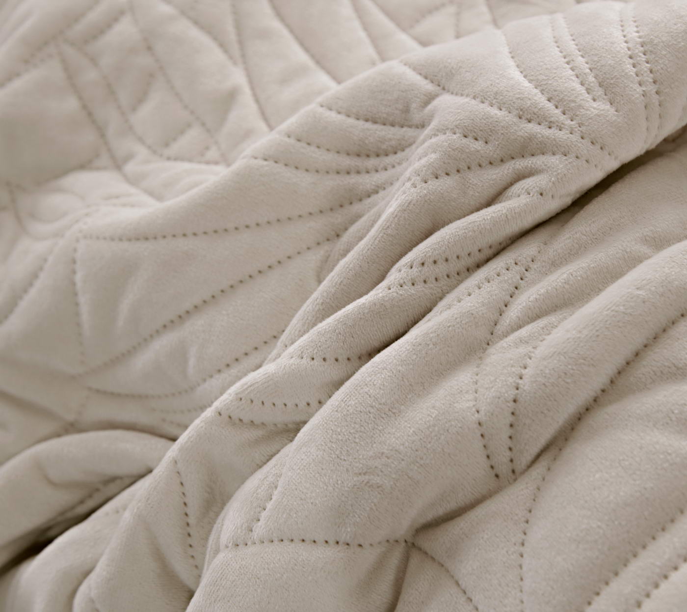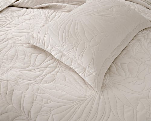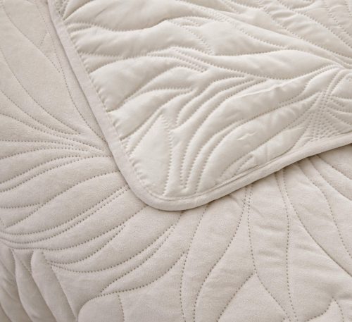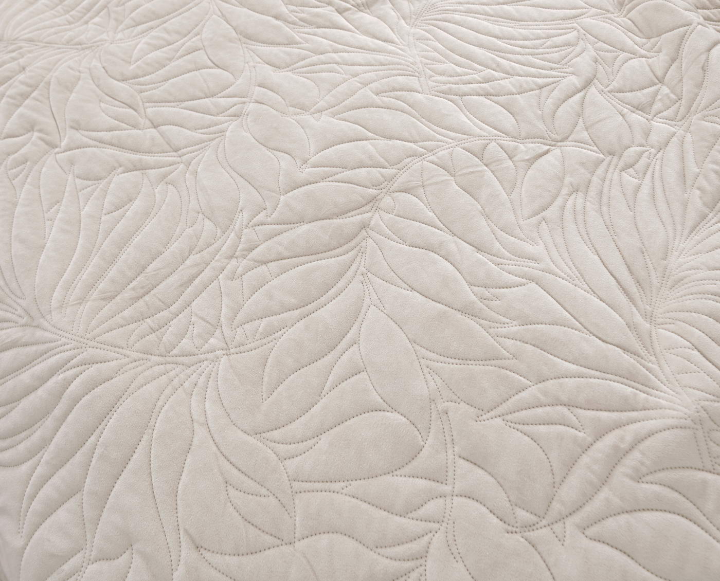 Стёганое покрывало Глория изготовлено из 100% вискозы, что делает его невероятно мягким и комфортным. Рисунок напоминает листья лавра. Такой орнамент подойдет большинству современных интерьеров.