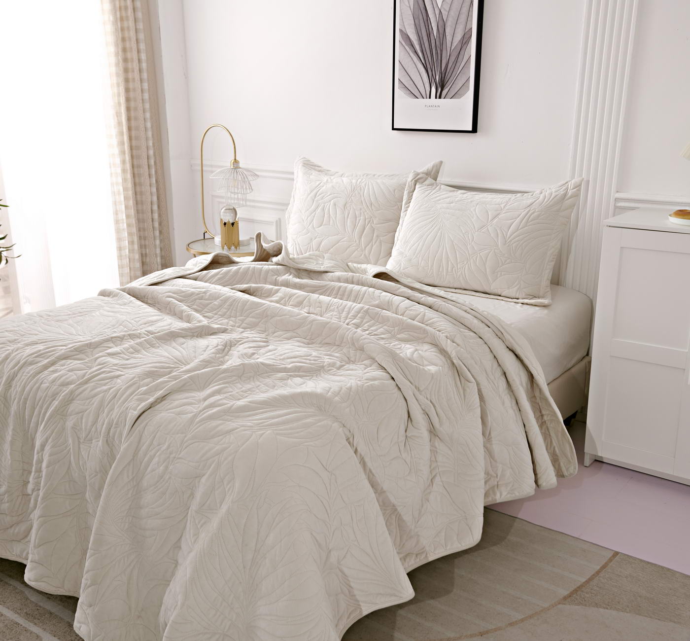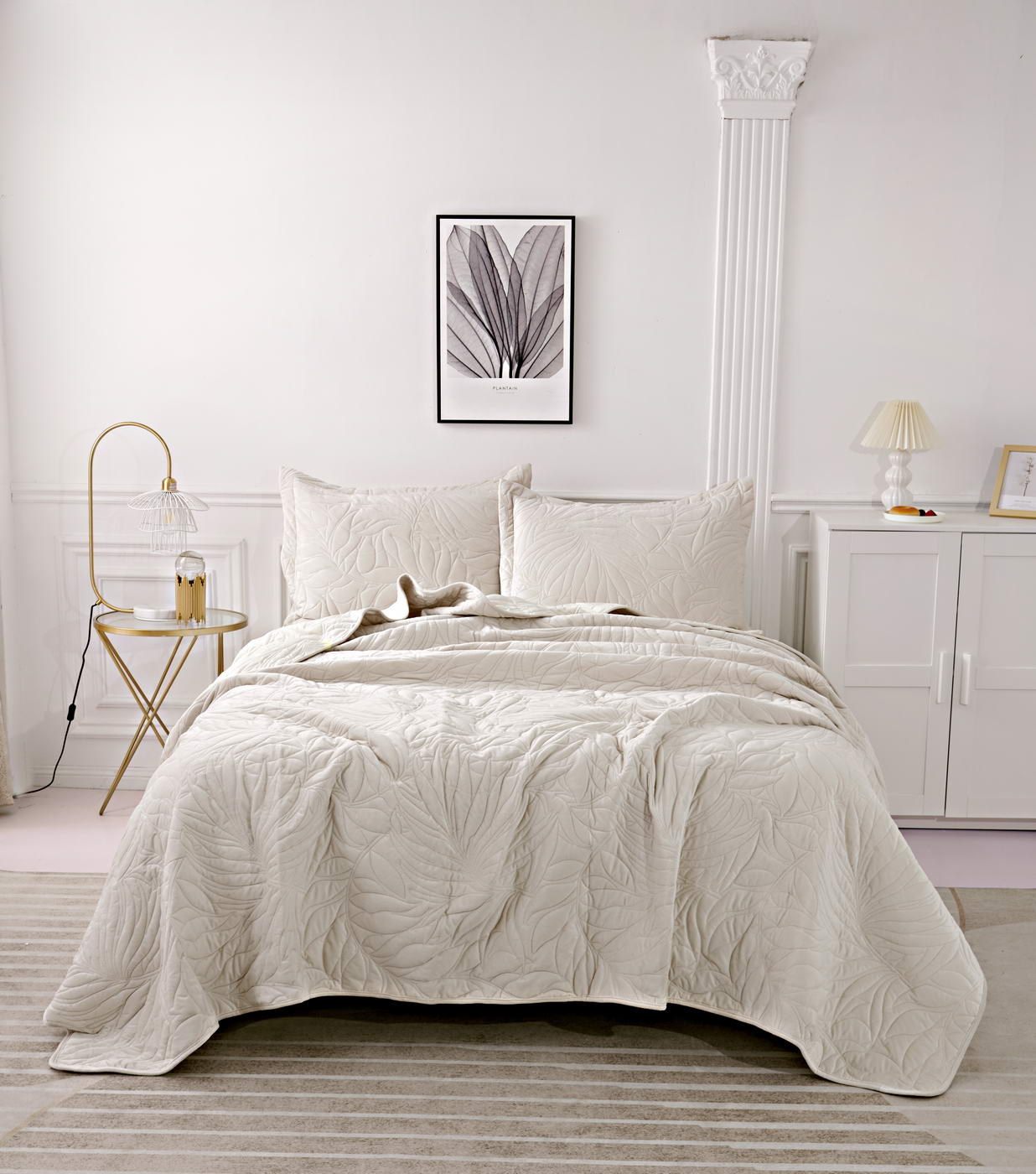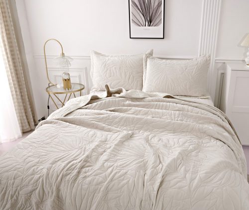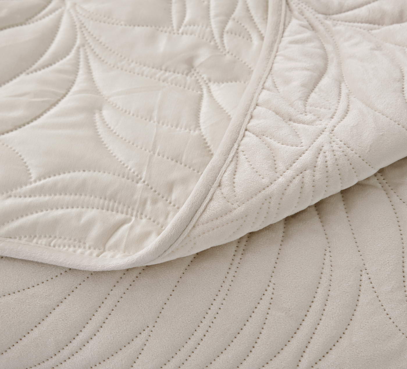 Стёганое покрывало Глория изготовлено из 100% вискозы, что делает его невероятно мягким и комфортным. Рисунок напоминает листья лавра. Такой орнамент подойдет большинству современных интерьеров.
