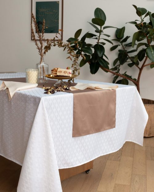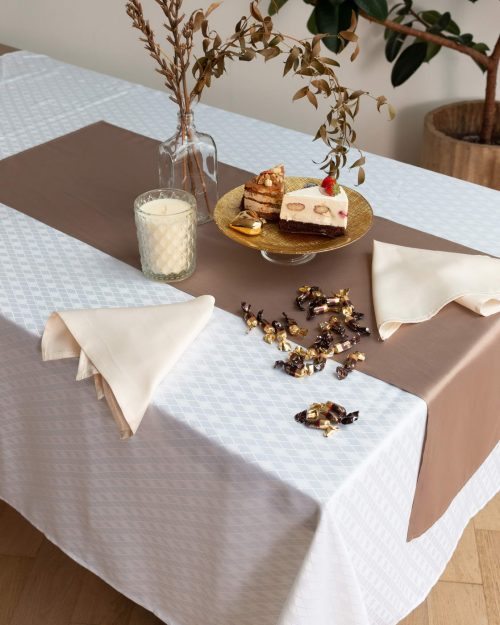 В коллекцию также входят сервировочные салфетки и дорожки в размере 40х140 см.