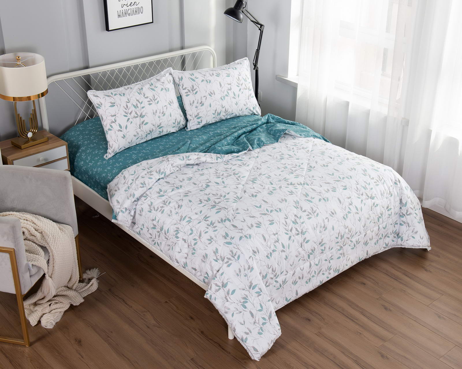 Летний набор от Sofi de Marko идеально подойдет для межсезонья. Состоит из легкого летнего одеяла, наволочек и простыни.