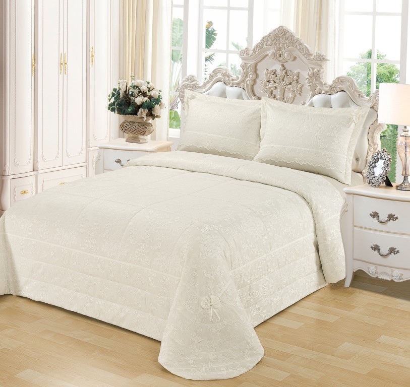 Приятное, бантики, кружево — романтИк. Будь у меня прованс, взяла бы, приятное и нежное. Но в пользу минимализма взяла однотонное иное покрывало. Очень большая коробка, будьте готовы )