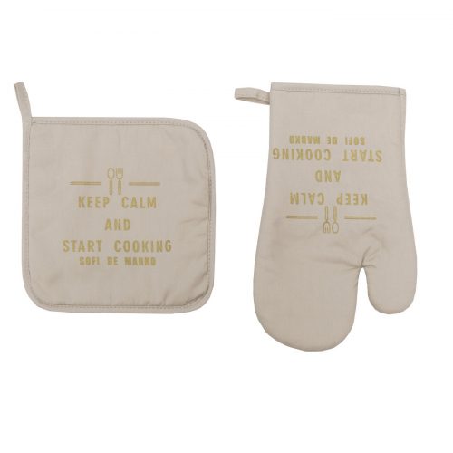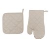В комплект входят варежка и прихватка для горячей посуды. Они также выполнены из прочного хлопка, поэтому обладают прекрасной термоизоляцией.