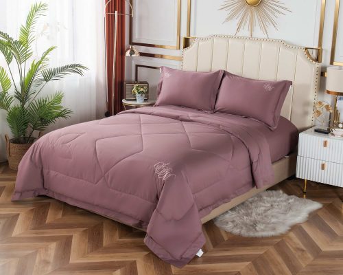 В комплект входят простыня, наволочки и одеяло. Одеяло простеганное, легкое и воздушное, его можно стирать в стиральной машине. Благодаря микроволокну в составе наполнителя для одеяла, оно всегда принимает свою начальную форму.