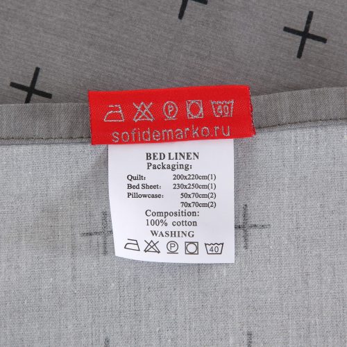 Пододеяльник 200*220 – 1 шт. Простыня 230*250 – 1 шт. Наволочка 50*70 – 2 шт.; 70*70 — 2 шт.