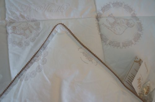 По всему периметру изделия декоративный кант бежевого цвета, что придает завершенность и изысканный вид. На чехол одеяла нанесен эксклюзивный принт бежевого цвета.