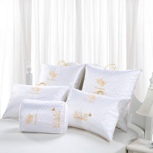 Сам шелк находится внутри наперника (чехол съемный), который можно снимать. Тем самым — подушка держит форму, а наперник содержит все полезные свойства шелка. Сбоку подушки небольшой потайной карманчик на молнии, куда вложен образец наполнителя.
