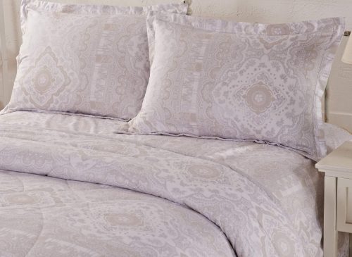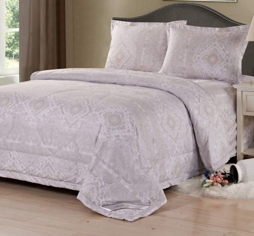 Летний набор от Sofi de Marko идеально подойдет для межсезонья. Состоит из легкого летнего одеяла, наволочек и простыни.  Состав хлопка с поливискозой  лучше всего подходит для жарких летних ночей. Такой летний набор не требует покрывала, одеяло может выполнять также и декоративную функцию благодаря красивому рисунку, где сочетается превосходно цветочный орнамент с вензелями или восточными мотивами.
