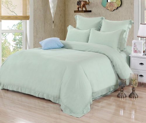 Коллекция Присцила выполнена в пастельных тонах и декорирована мережкой по периметру наволочек и пододеяльника, застежка на пуговицах.