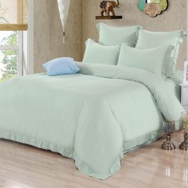 Коллекция Присцила выполнена в пастельных тонах и декорирована мережкой по периметру наволочек и пододеяльника, застежка на пуговицах.