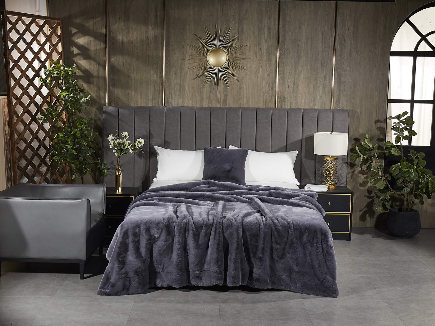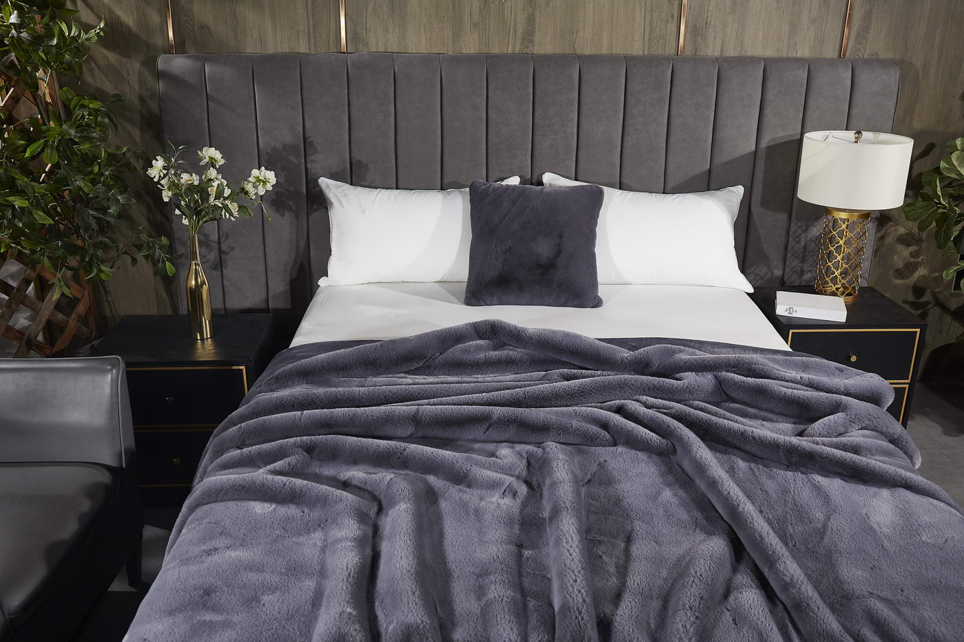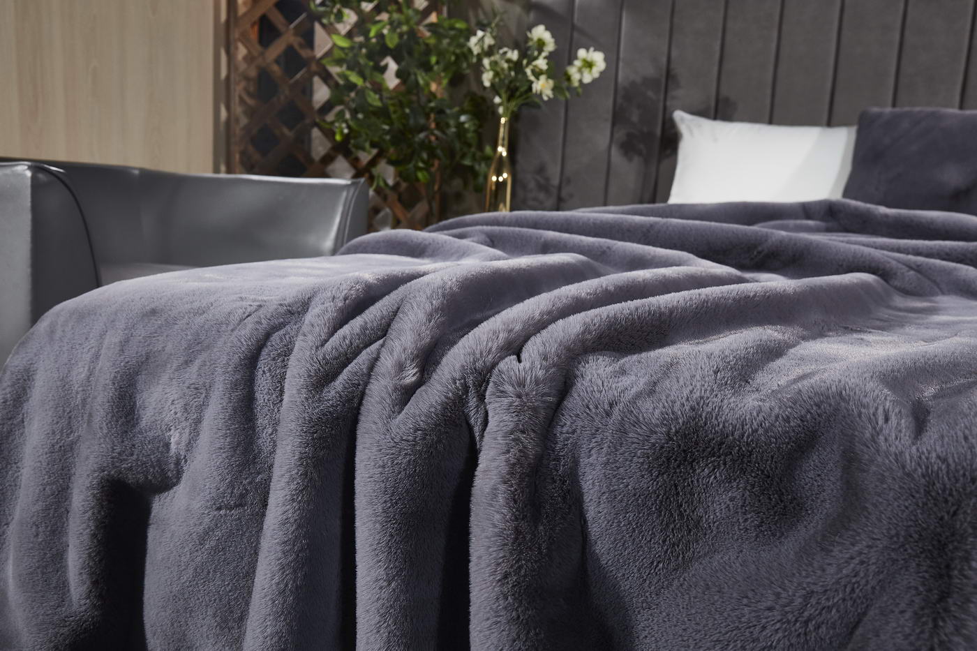 Элегантный меховой плед Ричард станет ненавязчивым акцентом в вашей спальне и гармонично впишется в домашний интерьер, создавая атмосферу изысканного комфорта и уюта. Плед представлен в нескольких модных цветовых вариантах. Нюдовые оттенки выгодно подчеркнут утонченный вкус его обладателя. Пепел розы поможет в создании романтической обстановки. Молочно-серебряный станет идеальным решением для мужского интерьера.