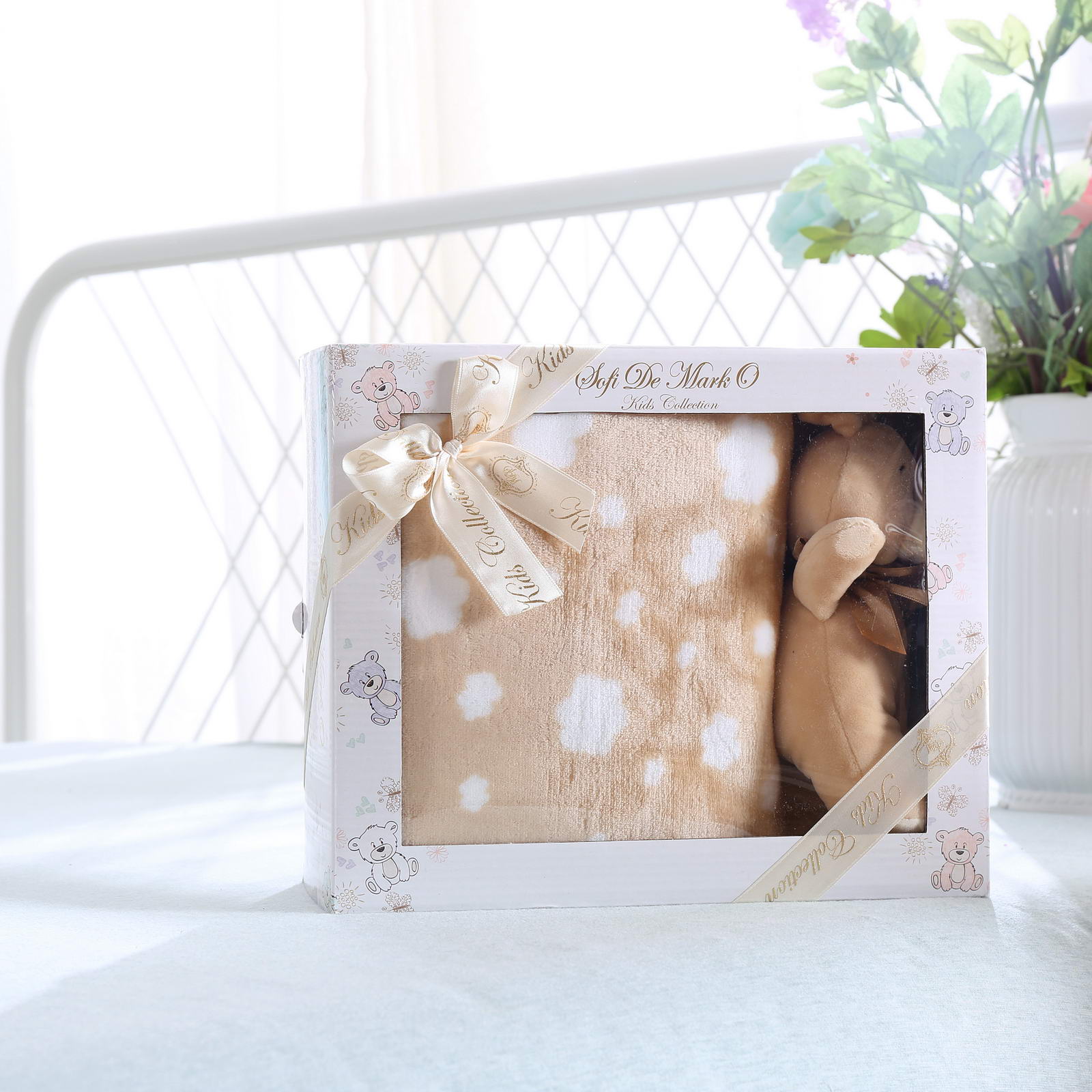 Детский плед с игрушкой в подарочной упаковке. Удивительно нежный, двухсторонний плед из велсофта от Sofi de Marko (Софи де Марко) подарит тепло и уют Вашему дому. Велсофт похож по своей фактуре на велюр, отличается мягкостью и шелковистостью. Изделия из велсофта износоутойчивые и на нем не образуются катышки. Плед создаст особую, утонченную атмосферу. Накиньте его на кресло или диван и Вы увидите как преобразится Ваш дом.