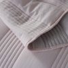 Покрывало выполнено в стиле хайтек, представлено в двух размерах и 5 пастельных цветах. Покрывало пошито с кантом. В комплекте идут одноцветные наволочки, без наполнителя и стежки для простоты в уходе. Дополнительный объем покрывалу придает повышенный граммаж наполнителя, за счет чего лаконичная классическая стежка выглядит более контрастно.