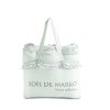 Одеяло аккуратно упаковано в подарочную, текстильную сумку и может послужить готовым решением для практичного подарка.