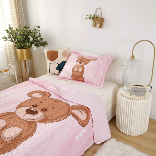 Детские покрывала — это особая забота об уюте и комфорте ребенка. Красивое, стеганое покрывало коллекции «Sunny day» придаст любой детской спальне яркую индивидуальность. Волнистые стежки делают изящные покрывала еще более выразительными и изящными. К ним в комплекте идут наволочки, у них есть интересная особенность, которая непременно понравится ребенку– небольшие ушки.