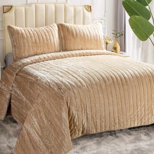 Лёгкое стеганное покрывало изготовлено из 100% вискозы. Стежка придает ткани объемную фактуру и задаёт вертикальный ритм. Декоративный кант в тон изделию добавляет изящества и стабилизирует ткань.