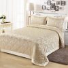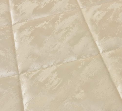 Стеганое, жаккардовое покрывало на подкладке из плотной декоративной ткани. Отличительной особенностью данной модели является её оригинальный жаккардовый рисунок. Данное стеганое покрывало представляет собой многослойное изделие, внешняя часть изделия состоит из жаккардового полотна, а внутренний наполнитель состоит из силиконизированного волокна плотность которго составляет 100г/м2. Для того, чтобы внутренний слой не сбивался в комки и создать фактурность внешних слоев, по всей площади покрывала производится простежка (прошивание). Это могут быть ровные линии или фантазийные узоры.