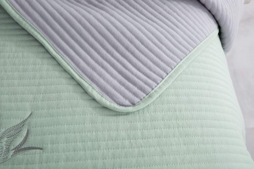 В комплекте идут однотонные наволочки со стежкой и наполнителем. Покрывало и наволочки пошиты с тонким кантом.