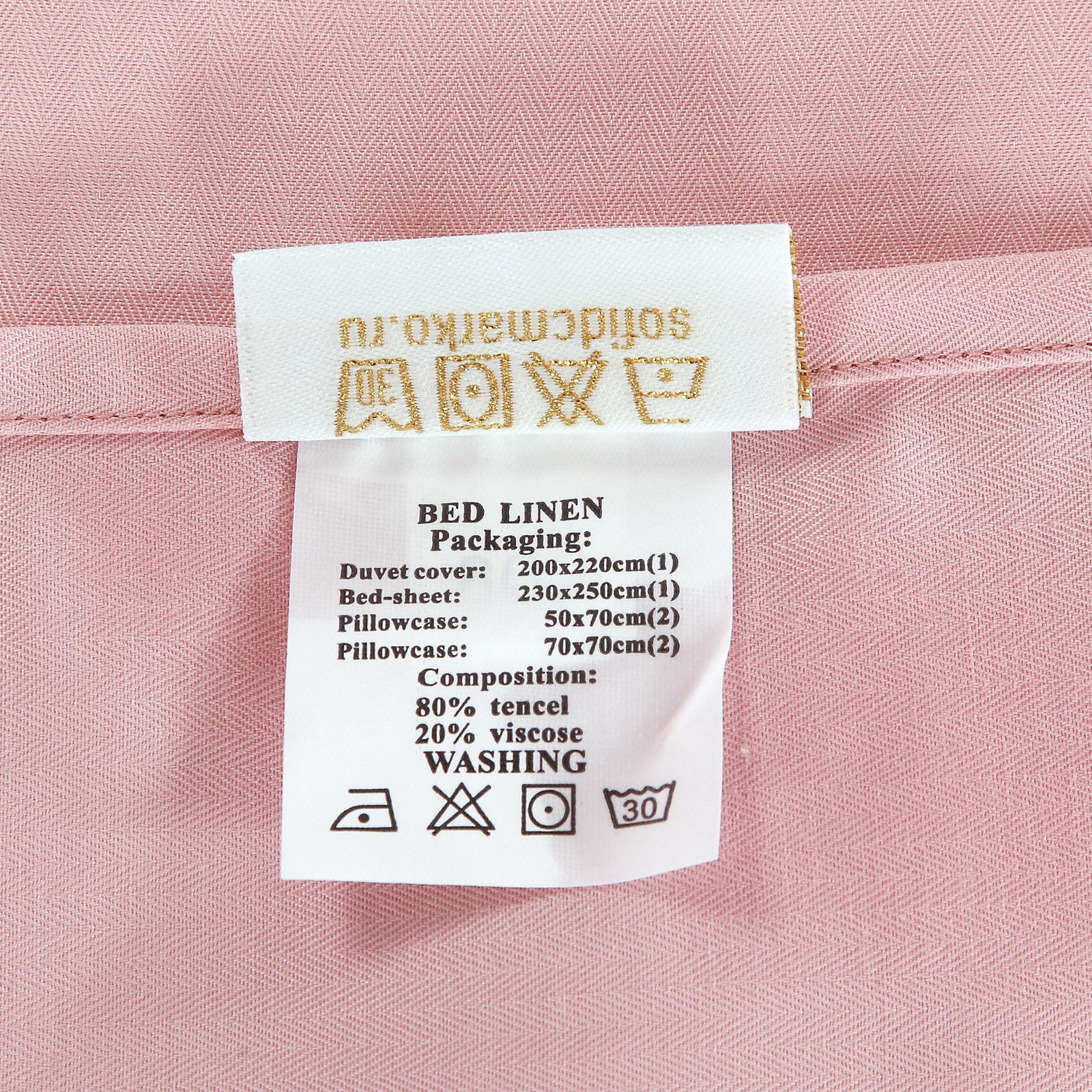 Пододеяльник 200*220 – 1 шт. Простыня 230*250 – 1 шт. Наволочка 50*70 – 2 шт.; 70*70 — 2 шт.