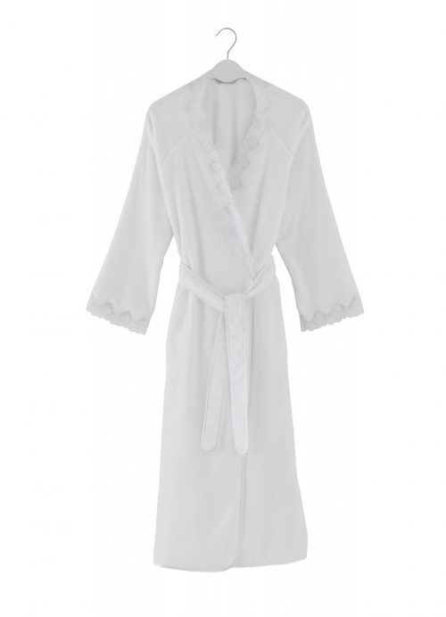 Изысканное кружево в сочетание с нежной махрой – пожалуй, главная отличительная черта женского халата Angelic. Халат имеет классическую длину, на поясе,. По низу халата, с обеих боковых сторон имеются два небольших разреза. По бокам, два внутренних (боковых) кармана.