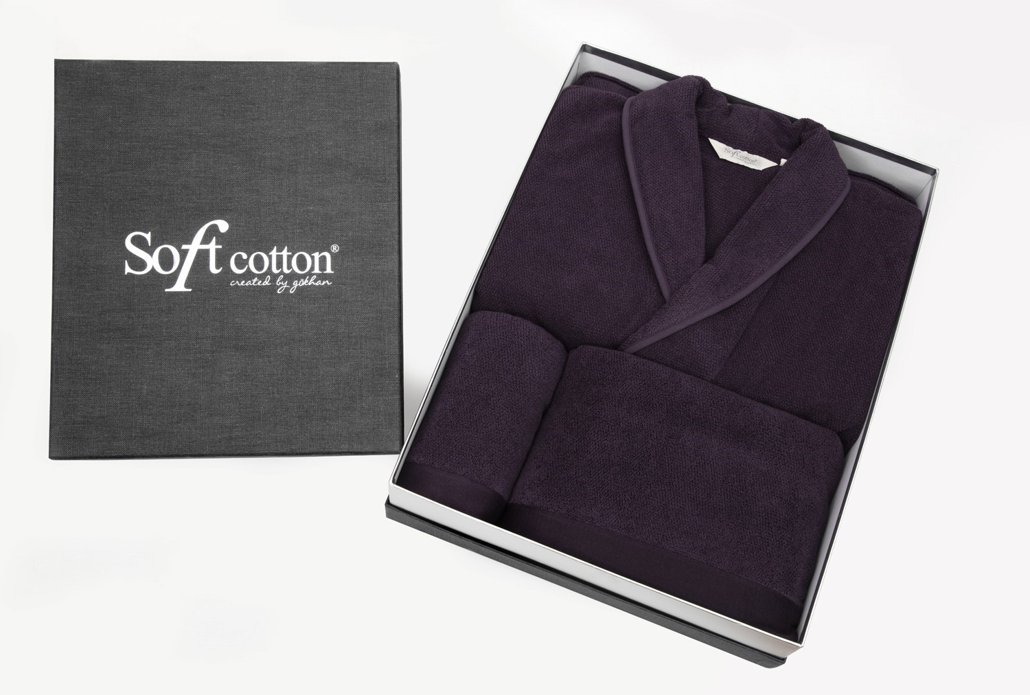 В набор входит: халат, банное и лицевое полотенце.