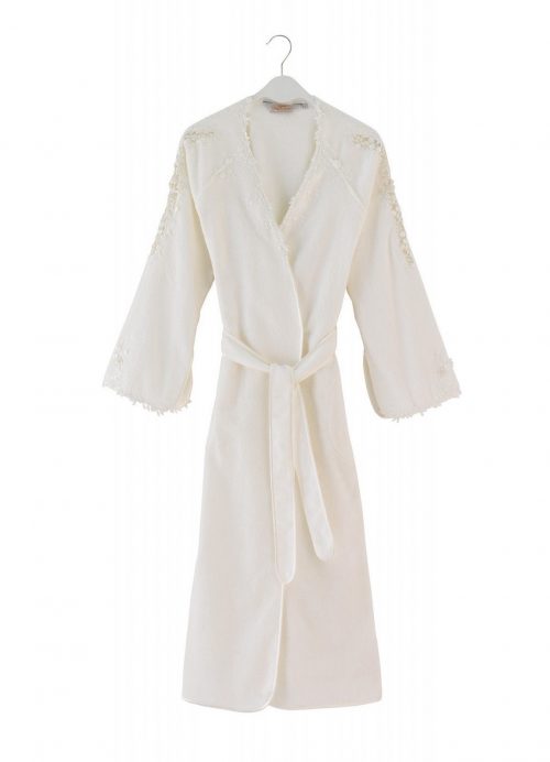 Выполненный в романтичном стиле длинный халат кимоно Massal, превзойдет все ожидания о комфорте и элегантности. Модель имеет классическую длину, на поясе. Для удобства, имеются внутренние дополнительные завязки (атласные ленты), и два внутренних (врезных) боковых кармана. По вырезу горловины элегантная цветочная вышивка. По плечу до середины рукава – вышивка с декоративными прорезями, украшенная искусственным жемчугом. По низу рукава, с внутренней стороны – небольшой декоративный разрез со скругленными углами. Низ рукава украшен вышивкой, искусственным жемчугом.