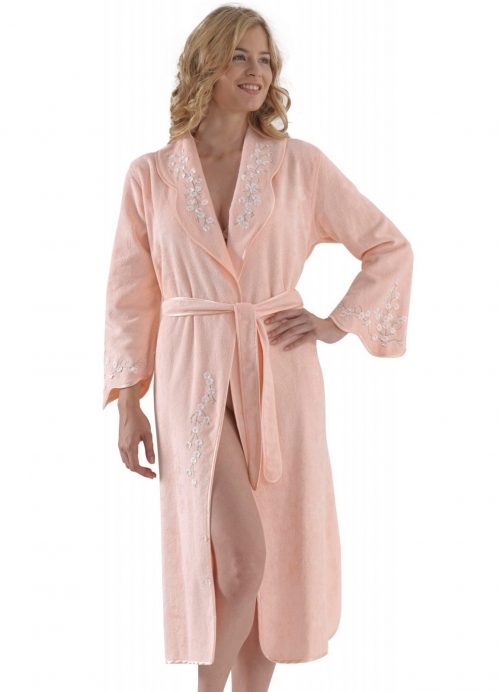 Комфорт, который станет главным украшением на вашем теле. Халатик длинный, на съемном махровом пояске. Воротниковая область и нижний край рукава, цветочная вышивка с кружевом. По бокам, имеются два внутренних кармашка. К данному халату, вы можете приобрести отдельно полотенце для ванной из данной коллекции.