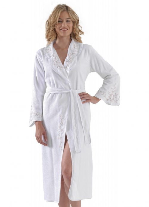 Комфорт, который станет главным украшением на вашем теле. Халатик длинный, на съемном махровом пояске. Воротниковая область и нижний край рукава, цветочная вышивка с кружевом. По бокам, имеются два внутренних кармашка. К данному халату, вы можете приобрести отдельно полотенце для ванной из данной коллекции.