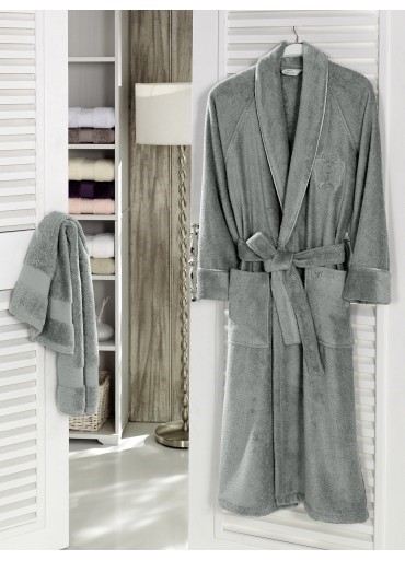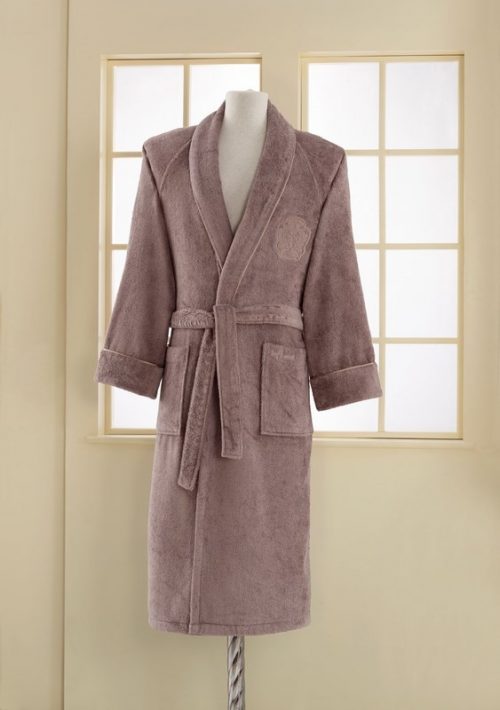 Серия халатов Deluxe примечательна оригинальному составу хлопка и модала. Добавление модала делает ткань еще более мягкой и нежной, придавая слегка заметный лоск. Халат классического фасона, два накладных кармана, пояс съемный, в верхнем левом углу декоративная вышивка. Воротник, верхний край карманов и манжеты рукавов отделаны декоративной атласной тесьмой, примерная длина 125 см.