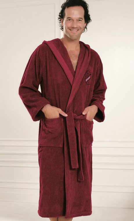 Отличительной чертой этой коллекции халатов является удобный и комфортный фасон с капюшоном. Фактурная выработка ткани в виде вертикальных полос напоминает вельвет, делает эту серию неповторимой. Халат с накладами карманами, на съемном поясе, изготовлен из высшего сорта эгейского хлопка. Изделие бережно сложено в индивидуальную ПВХ упаковку с логотипом бренда.