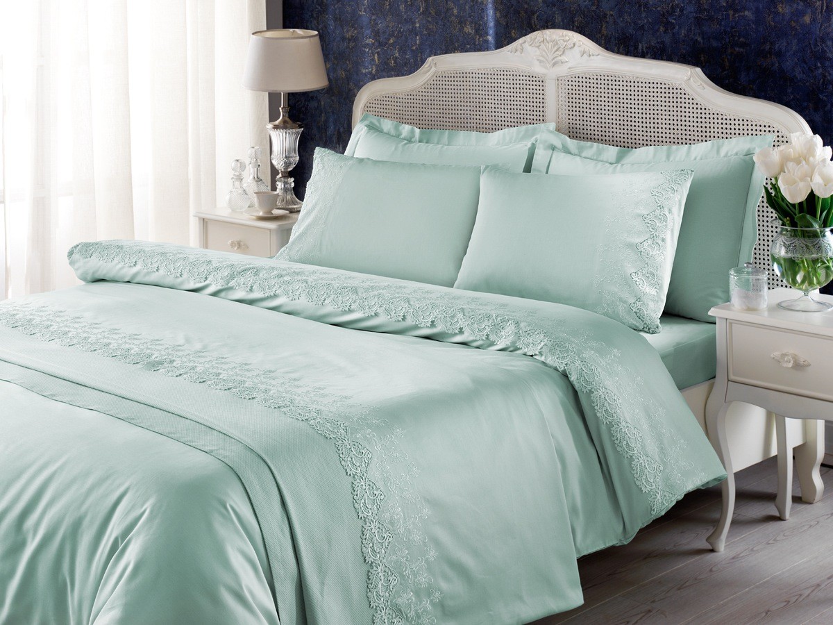 Tivolyo Home является премиальным турецким брендом широко известным на европейском рынке. Вся продукция выполнена под тщательным контролем специалистов, только из высококачественных материалов при учете всех современных тенденций в мире моды. Коллекция сатин де люкс с кружевом выполнена из сатина высокой плотности и декорирована нежным кружевом. Это идеальный подарок на свадьбу или юбилей. И без сомнений коллекция придется по вкусу нежным и романтическим натурам. Изделия бережно сложены в подарочную упаковку с логотипом фирмы.